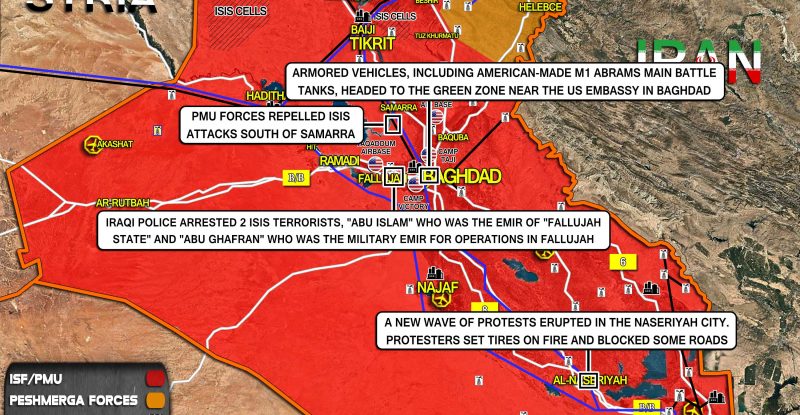 The convoy of U.U. military reinforcements, including American-made M1A1 Abrams main battle tanks, was spotted heading to the Green Zone…