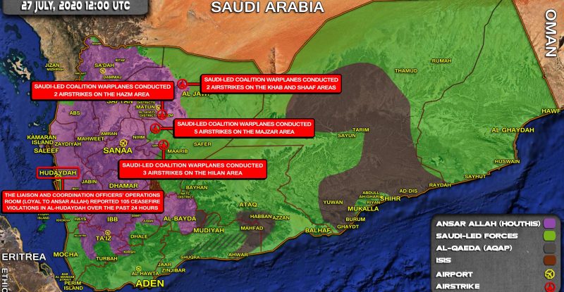 A brief overview of the recent ddevelopments in Yemen: Saudi-led coalition warplanes conducted 3 airstrikes on the Hilan area; Saudi-led…