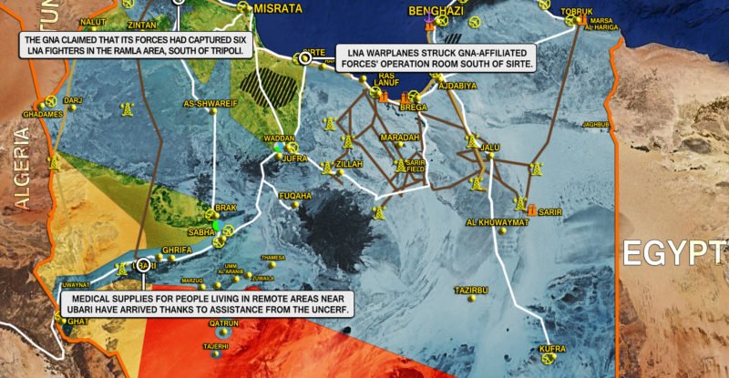 Libyan National Army (LNA) warplanes struck GNA-affiliated forces’ operation room south of Sirte; LNA warplanes struck Mitiga Airport last night;…