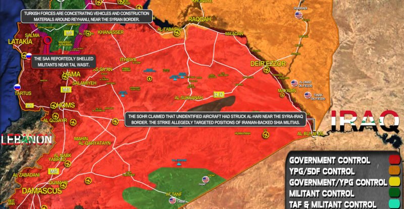 The SOHR claimed that unidentified aircraft had struck al-Hari near the Syria-Iraq border. The strike allegedly targeted positions of Iranian-backed…