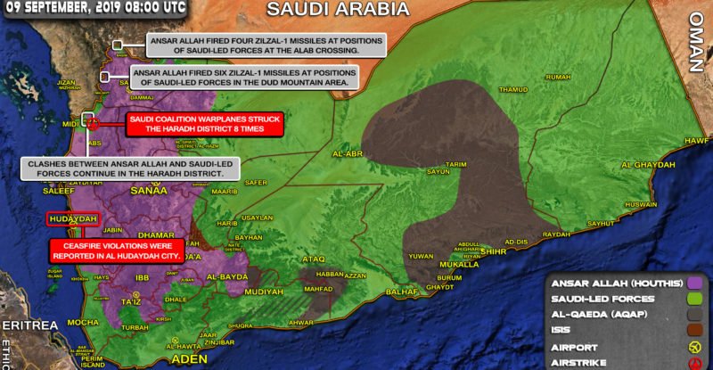 Ansar Allah fired three Zilzal-1 missiles at positions of Saudi-led forces at the Alab crossing; Saudi-led forces attacks Ansar Allah…
