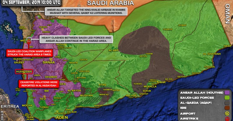 Ansar Allah targeted the King Khalid airbase in Khamis Mushait with several Qasef K2 loitering munitions; Heavy clashes between Saudi-led…