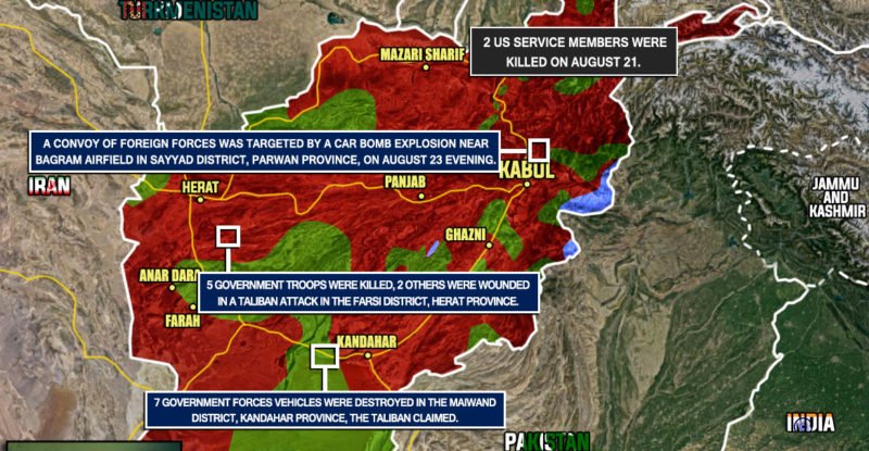 2 US service members were killed on August 21; A convoy of foreign forces was targeted by a car bomb…