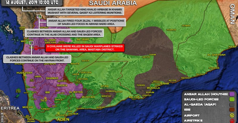 Ansar Allah targeted King Khalid Airbase in Khamis Mushait with several Qasef K2 loitering munitions; Clashes between Ansar Allah and…
