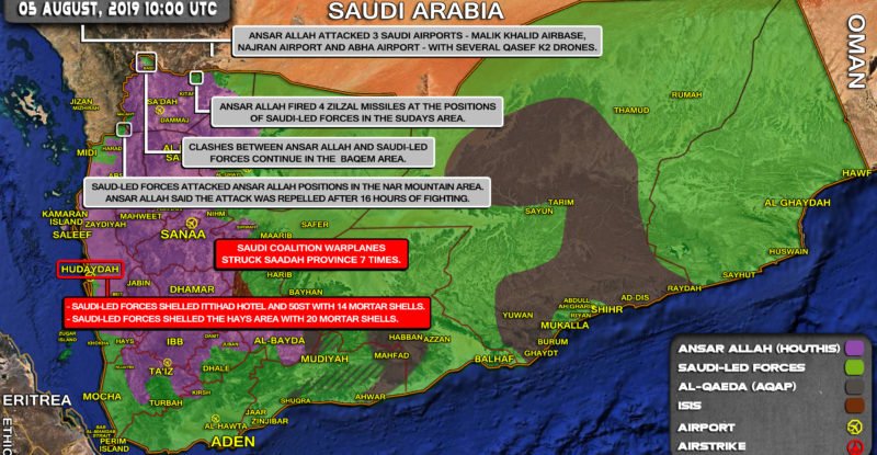 Ansar Allah attacked 3 Saudi airports – Malik Khalid Airbase, Najran Airport and Abha Airport – with several Qasef K2…