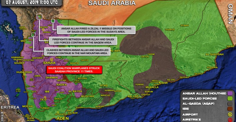 Ansar Allah fired a Zilzal-1 missile on positions of Saudi-led forces in the Sudays area; Firefights between Ansar Allah and…