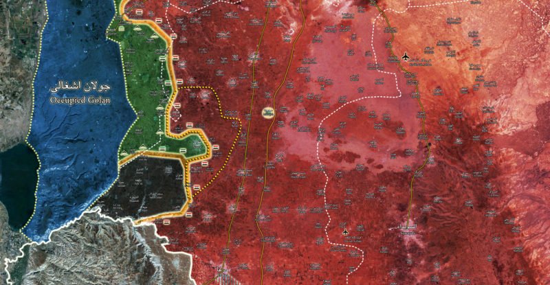 This map provides a general look at the military situation in Syria on July 17, 2018. The Syrian Arab Army…