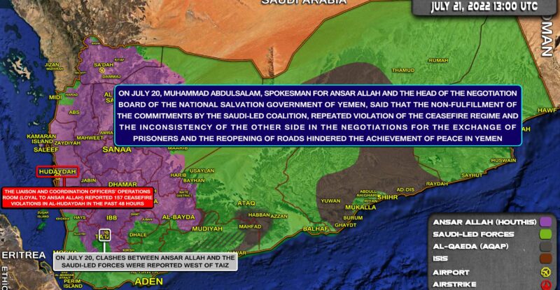 The Liaison and Coordination Officers’ Operations Room (loyal to Ansar Allah) reported 157 ceasefire violations in al-Hudaydah in the past…