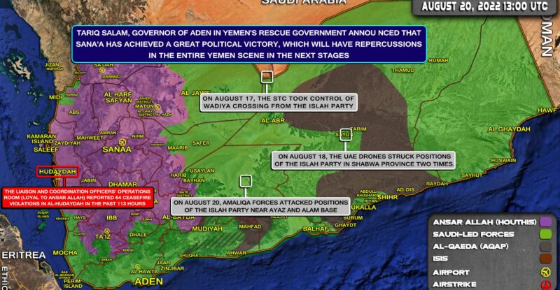 The Liaison and Coordination Officers’ Operations Room (loyal to Ansar Allah) reported 64 ceasefire violations in al-Hudaydah in the past…