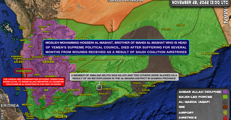The Liaison and Coordination Officers’ Operations Room (loyal to Ansar Allah) reported 33 ceasefire violations in al-Hudaydah in the past…