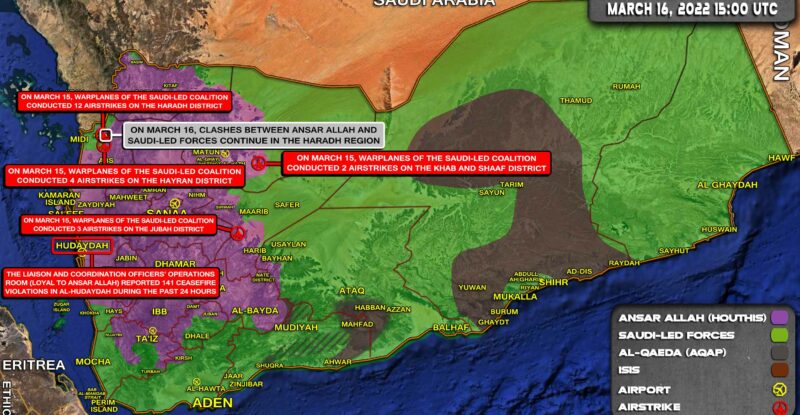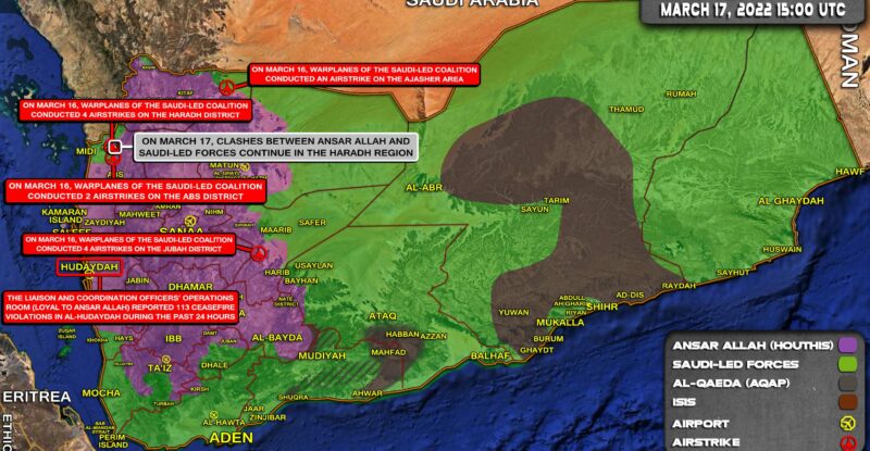 On March 26, warplanes of the Saudi-led coalition conducted 2 airstrikes on the Haradh district; On March 26, warplanes of…