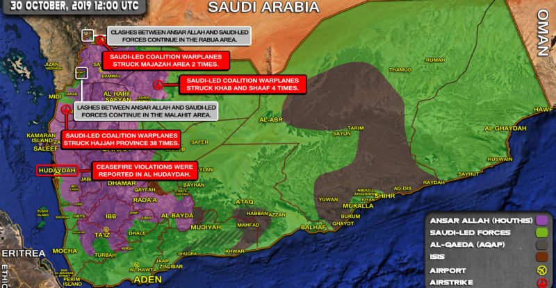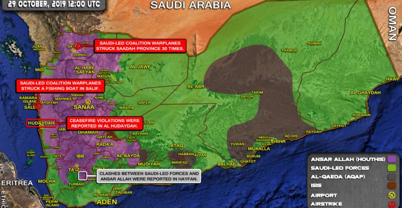 Clashes between Saudi-led forces and Ansar Allah were reported in Hayfan; Saudi-led coalition warplanes struck Saadah province 30 times; Saudi-led…
