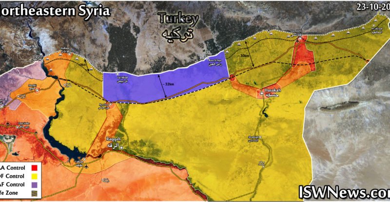 The maps above provides a general look at the US-Turkish and Russian-Turkish safe zones. While the US-Turkish safe zone has…