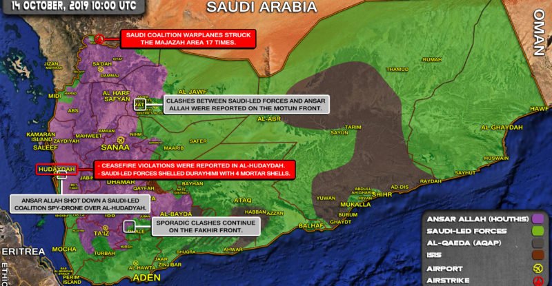 Ansar Allah shot down a Saudi-led coalition spy-drone over Al-Hudadyah; Clashes between Saudi-led forces and Ansar Allah were reported on…
