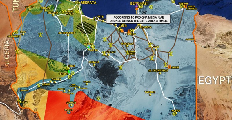 According to pro-GNA media, UAE drones struck the Sirte area 3 times; According to pro-GNA media, Government of National Accord…