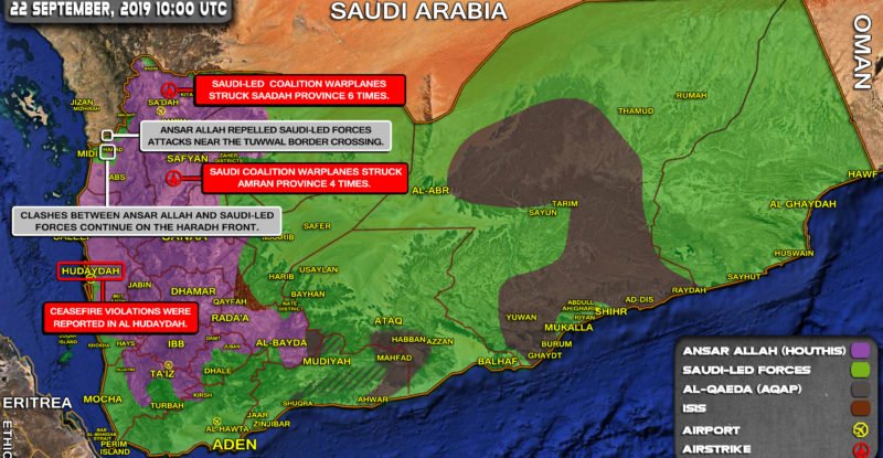 Ceasefire violations were reported in Al Hudaydah; Saudi coalition warplanes struck Saadah province 6 times; Saudi coalition warplanes struck Amran…