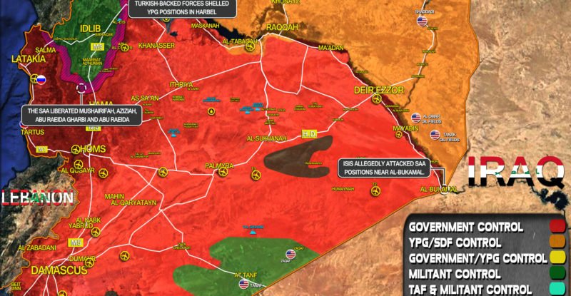 ISIS allegedly attacked Syrian Arab Army (SAA) positions near al-Bukamal; The SAA liberated Mushairifah, Aziziah, Abu Raeida Gharbi and Abu…