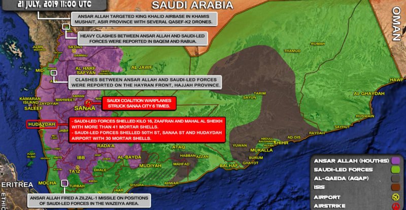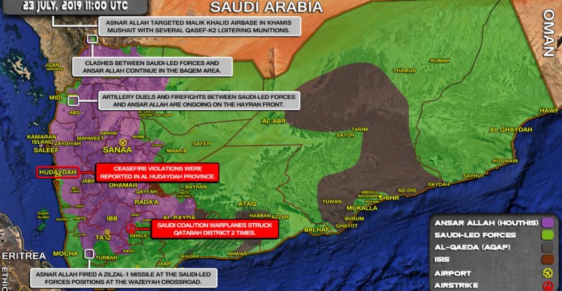 Asnar Allah targeted Malik Khalid Airbase in Khamis Mushait with several Qasef-K2 loitering munitions; Clashes between Saudi-led forces and Ansar…