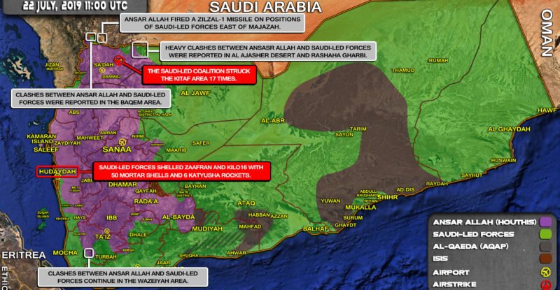 Ansar Allah fired a Zilzal-1 missile on positions of Saudi-led forces east of Majazah; Clashes between Ansar Allah and Saudi-led…