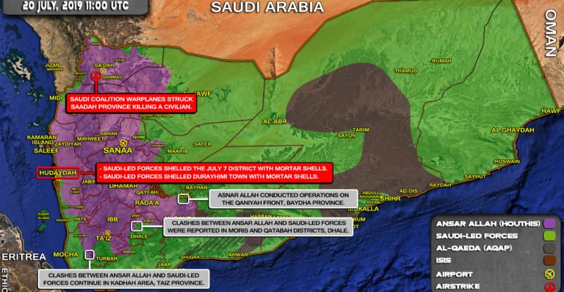 Saudi-led forces shelled the July 7 district with mortar shells. Saudi-led forces shelled Durayhimi town with mortar shells. Saudi coalition…