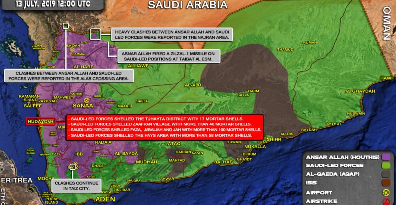 A brief overview of the recent developments in Yemen: Saudi-led forces shelled the Tuhayta district with 17 mortar shells; Saudi-led…