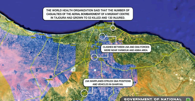 – Libyan National Army (LNA) warplanes struck Government of National Accord (GNA) positions and vehicles in Gharyan; – Clashes between…