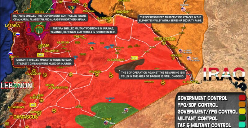 Militants shelled the government-controlled towns of al-Karim, al-Aziziyah and al-Rasif in northern Hama; The Syrian Arab Army (SAA) shelled militant…