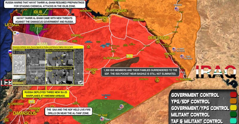 A brief overview of the recent developments in Syria: Russia deployed three new Su-25 warplanes at Hmeimim airbase; The Syrian…