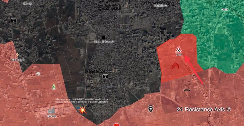 This map provides a general look at the progress of the Syrian Arab Army-led advance against ISIS in southern Damascus….