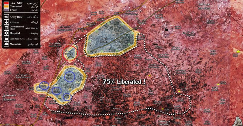 This map provides a general look at the military situation in the Damascus subrub of Eastern Ghouta. Over the last…