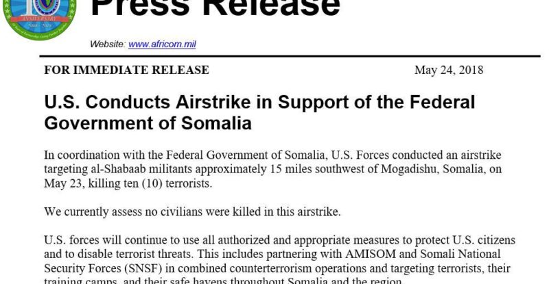On May 24, the US Army Africa Command (AFRICOM) announced in an official statement that US warplanes had killed ten…