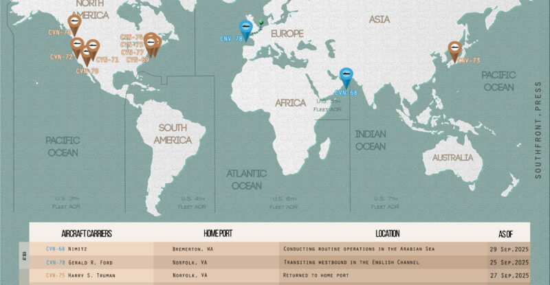 This is the newest update of the ‘U.S. Carrier Strike Groups Locations Map’ exclusive series showing the approximate locations of…