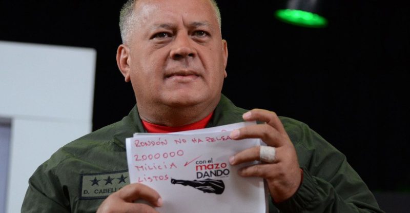 President of Venezuela’s Constituent Assembly Diosdado Cabello send a message to US President National Security Adviser John Bolton by showing a…
