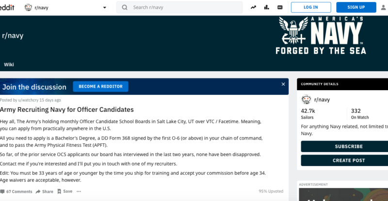 US Army recruiters are attempting to poach US Navy officer candidates on Reddit, USNI News reported. The outlet reported that…