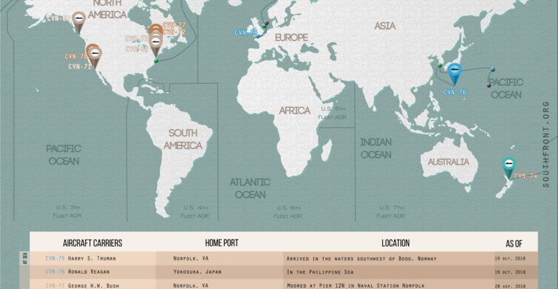 This is the newst update of the ‘U.S. Carrier Strike Groups Locations Map’ exclusive series showing the approximate locations of U.S. Carrier Strike…