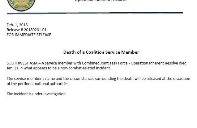 A US-led coalition service member died on January 31 “in what appears to be a non-combat-related incident”. The name of…