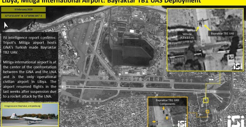 Israel’s ImageSat Intl. released a sateillte image showing Turkish Bayraktar TB2 unmanned combat aerial vehicles deployed at Mitiga International Airport…