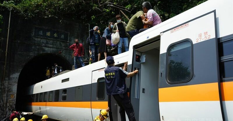 A truck rolled down a hill and smashed into a passing train in Taiwan, near the Toroko Gorge scenic area….