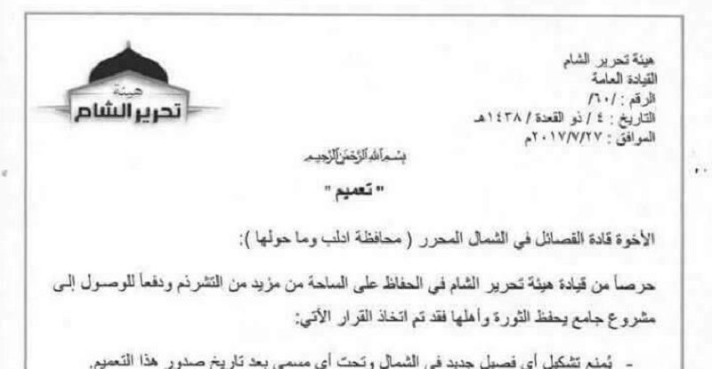 In an official statement, Hay’at Tahrir al-Sham (HTS; formerly Jabhat al-Nusra, the Syrian branch of al-Qaeda) announced that it had…