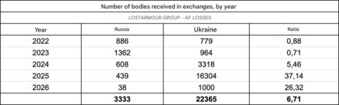 Parallel to the truce discussion, another exchange of fallen soldiers’ bodies took place. On January 29, Russia transferred 1,000 bodies to Ukraine, receiving 38 in return. This is the first such exchange in 2026. In total, over the entire period of such actions, 22,365 bodies have been returned to Ukraine, and 3,333 to Russia.