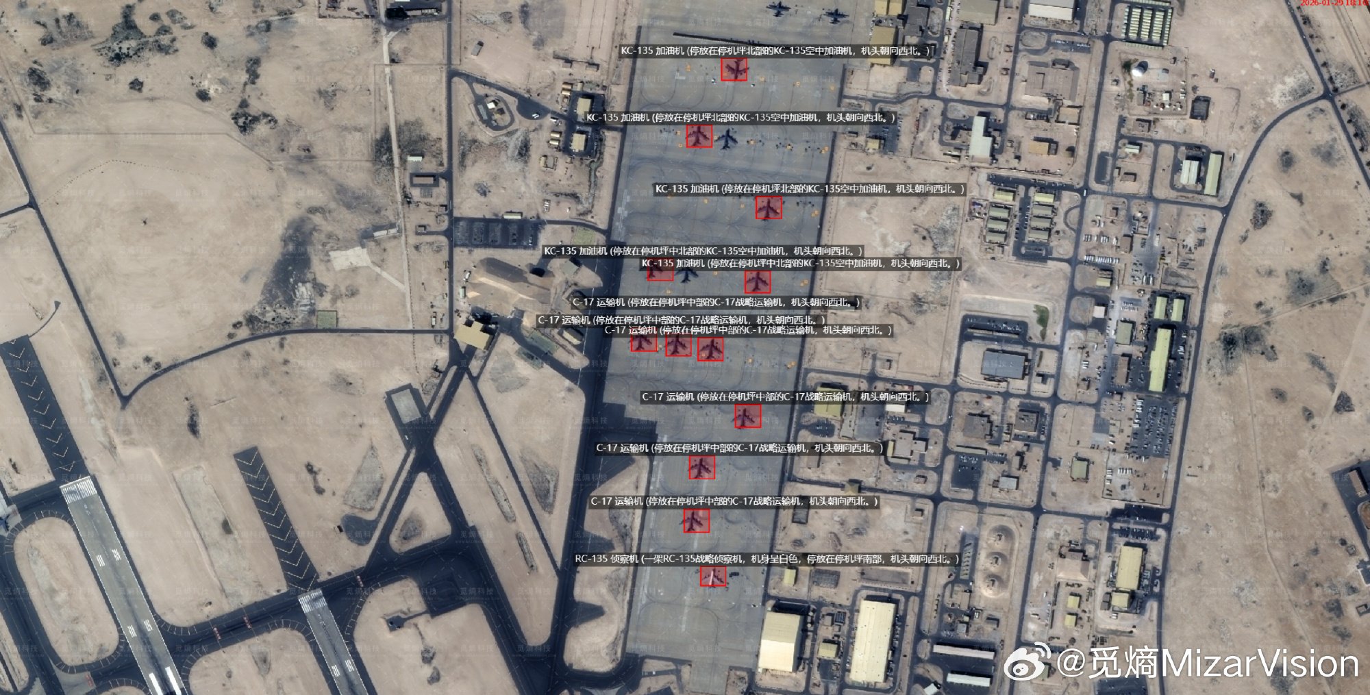 China’s MizarVision on January 30 released fresh satellite images from Al Udeid Air Base in Qatar, providing a detailed look at the ongoing United States military buildup there amid rising tensions with Iran.
