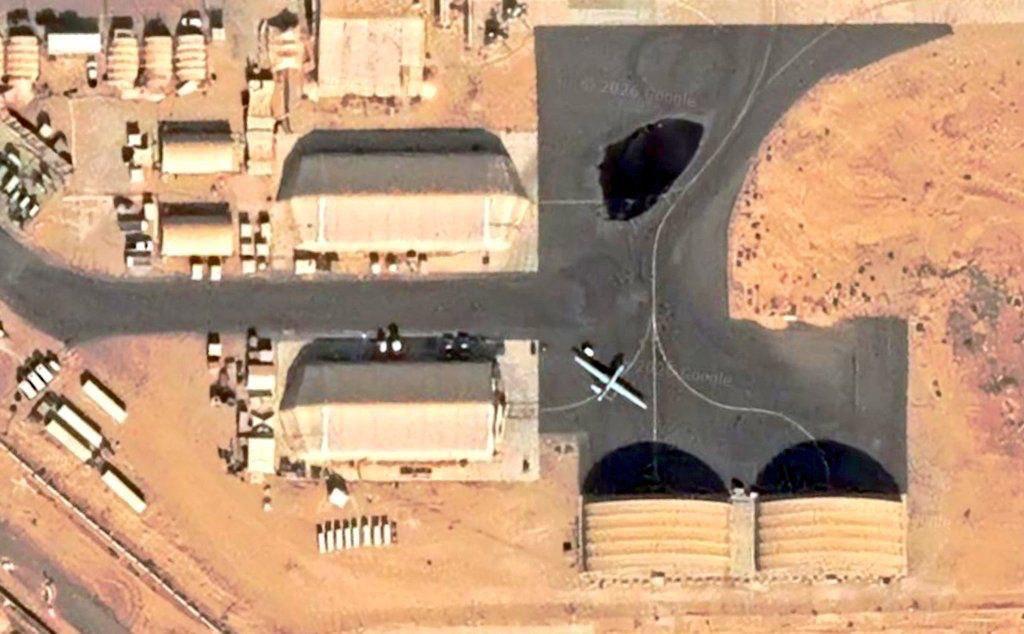 The images also show a massive crater, possibly caused by a ballistic missile, in an area where several small barracks were located at the air base.