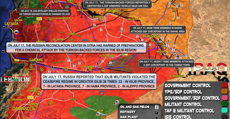 On July 17, Russia reported that Idlib militants violated the ceasefire regime in Greater Idlib 38 times: 22 – in…
