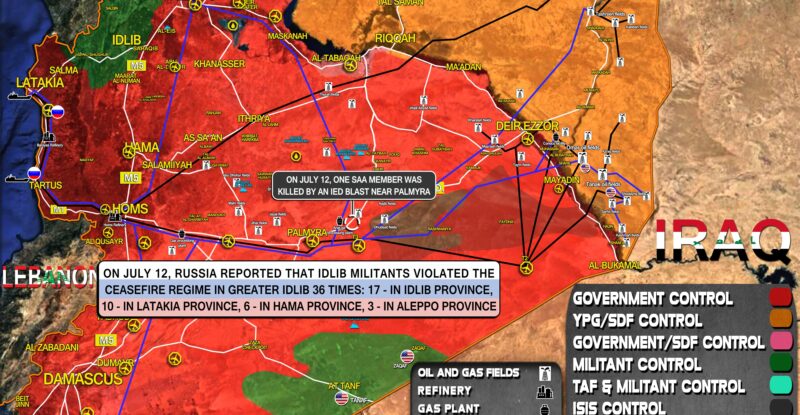 On July 12, Russia reported that Idlib militants violated the ceasefire regime in Greater Idlib 36 times: 17 – in…