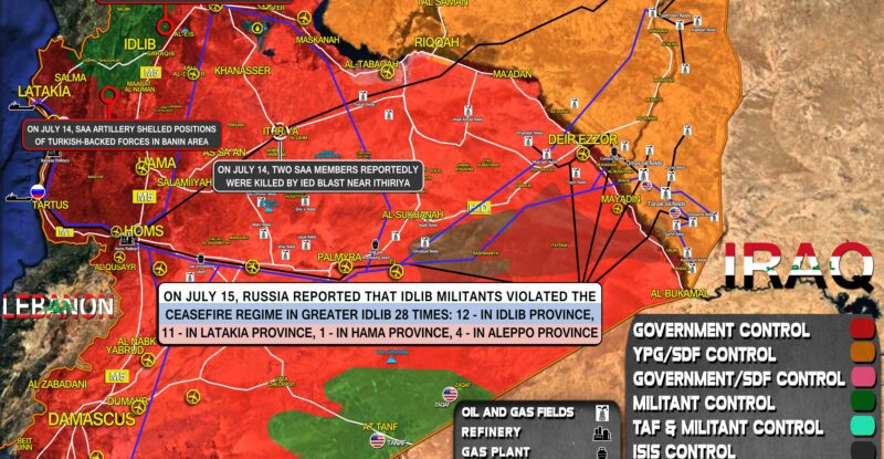 On July 15, Russia reported that Idlib militants violated the ceasefire regime in Greater Idlib 28 times: 12 – in…