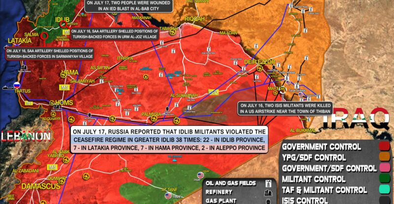 On July 17, Russia reported that Idlib militants violated the ceasefire regime in Greater Idlib 38 times: 22 – in…
