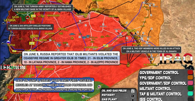 On June 9, Russia reported that Idlib militants violated the ceasefire regime in Greater Idlib 35 times: 21 – in…