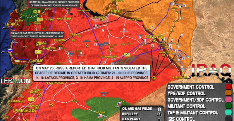 On May 26, Russia reported that Idlib militants violated the ceasefire regime in Greater Idlib 42 times: 21 – in…