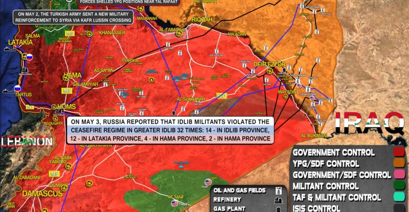 On May 3, Russia reported that Idlib militants violated the ceasefire regime in Greater Idlib 32 times: 14 – in…