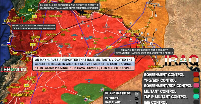 On May 4, Russia reported that Idlib militants violated the ceasefire regime in Greater Idlib 28 times: 15 – in…